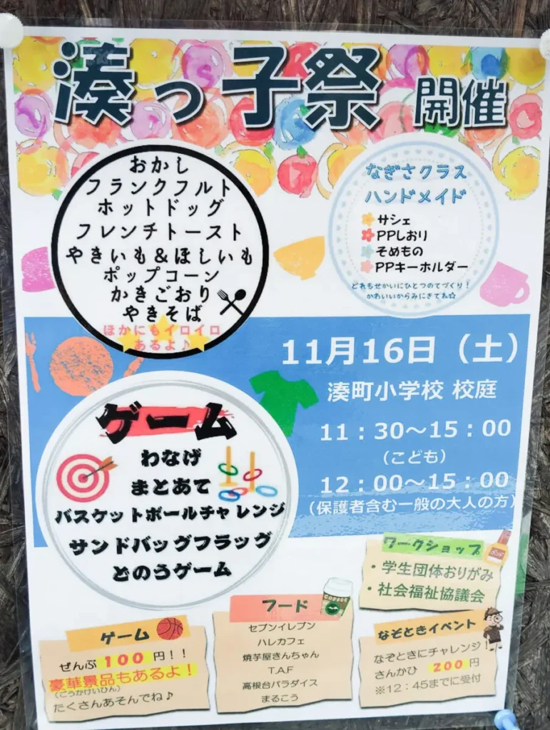 - 地域の方から、夏に湊町小の校庭で行われている「みなと子供まつり」と統合してはどうか、という話が浮上しています