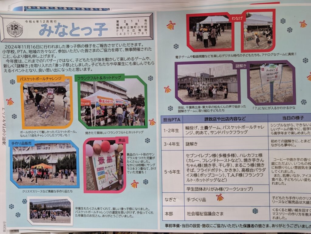 ・年1回の湊っ子祭(旧PTAバザー)の企画・運営